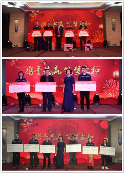 團(tuán)拜會(huì)中間還穿插了抽獎(jiǎng)環(huán)節(jié),隨著各等獎(jiǎng)項(xiàng)的抽取,不斷掀起團(tuán)拜會(huì)的高 潮。同時(shí),團(tuán)拜會(huì)還揭曉了2018年為永和集團(tuán)作出突出貢獻(xiàn)的各大獎(jiǎng)項(xiàng)?;鶎?、中層、高層、團(tuán)隊(duì)獎(jiǎng)、特別奉獻(xiàn)獎(jiǎng)、精神文明獎(jiǎng)、合作伙伴獎(jiǎng)、效益獎(jiǎng)、年度黨員獎(jiǎng)、黨支部先進(jìn)個(gè)人獎(jiǎng)等多項(xiàng)獎(jiǎng)項(xiàng),對(duì)永和人過(guò)去一年為公司的付出表示肯定,為永和人的來(lái)年鼓足了干勁。